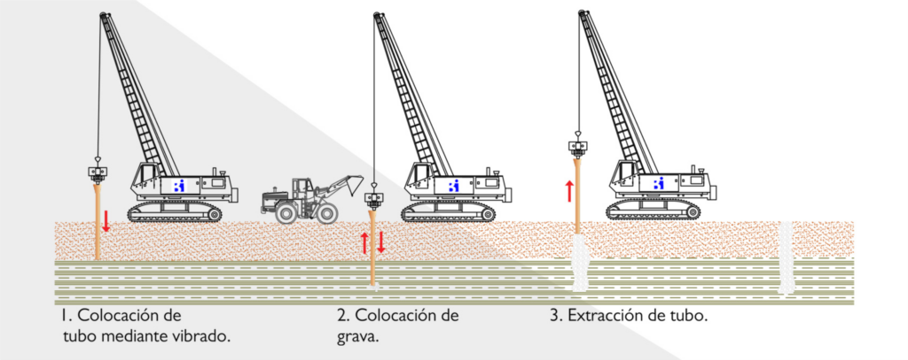 Estas columnas suelen combinarse con precarga para controlar asentamientos y facilitar la evacuación de agua o vacíos a través del material granular.