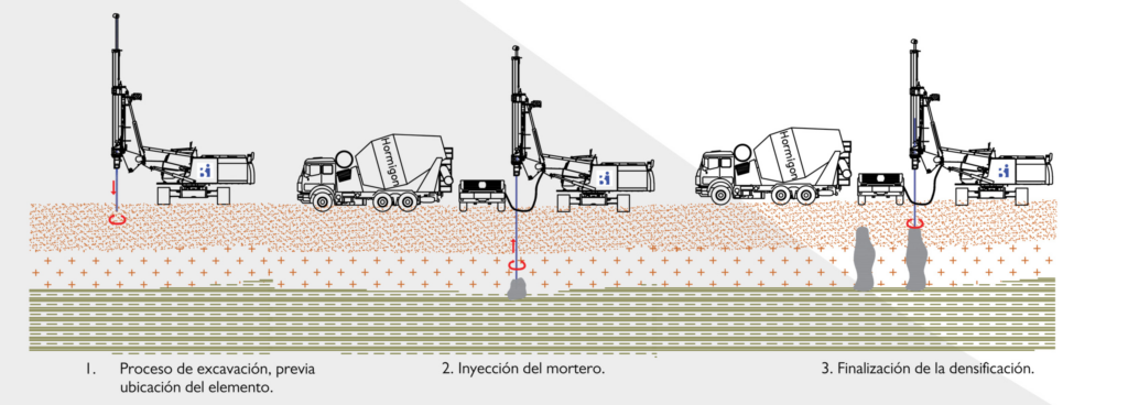 Es un proceso de mejoramiento de suelos en el cual, mediante la inyección de una lechada con alto contenido de material cementante (generalmente cemento), esta atraviesa suelos o rocas compactas con fisuras y se mezcla o sustituye el material existente.